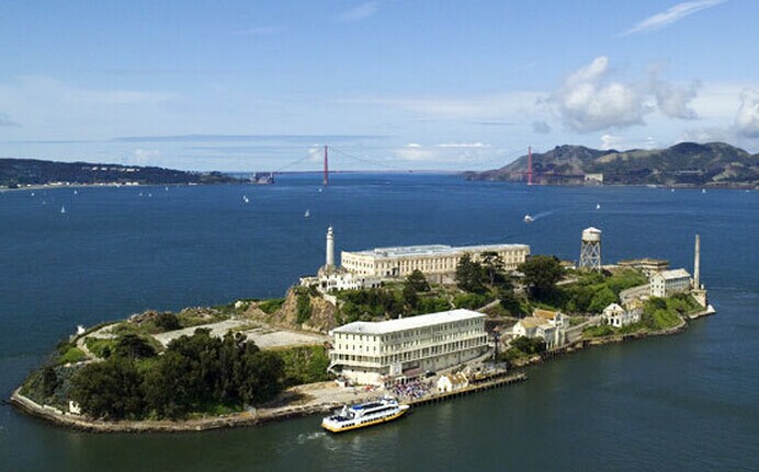 恶魔岛在3公里外的海中央与39号码头遥望。1934年到1963年的29年间,这里曾经是最大的联邦监狱。包括奥•卡蓬(AI Capone)和 "机枪凯利"(Machine Gun Kelly)等臭名昭著的头号罪犯都曾关押于此,故名 "恶魔岛"。如今已成为国家历史古迹,可以在39号码头搭乘渡轮前来参观监狱。 恶魔岛也是远观旧金山和金门大桥宏伟景象的绝佳位置。电影“勇闯夺命岛所”在地,海上监狱,越狱的传奇故事很多,记得要在网上提前订票。