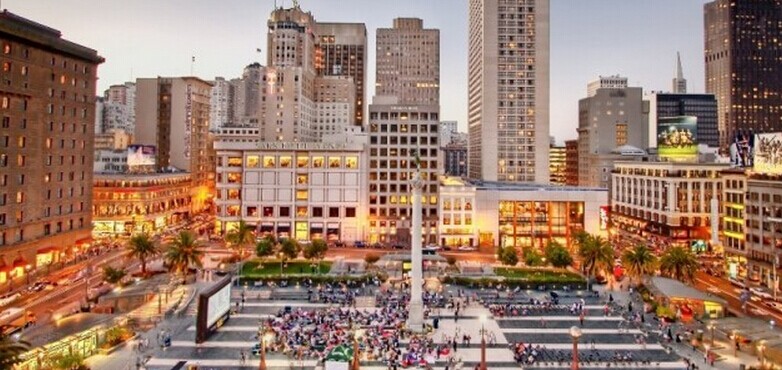 市中心的联合广场是由鲍威单(Powell)、邮政(Post)、斯托克顿(Stockton)和格尔(Geary)四条街道合围而成的,当年人们为了支持南北战争而聚集于此。旧金山的各大奢华酒店都在附近,萨克斯第五大道(Saks Fifth Avenue),梅西百货公司(Macy's),各大顶级设计师品牌, 以及一些高街品牌都是垂首可得。去Union Square联合广场血拼吧!联合广场是旧金山城最喧闹的地段,也是最昂贵的购物区,除了自己心爱的那些名店,不要错过最著名的梅西老百货旗舰店哦。