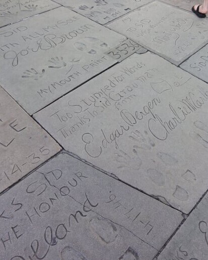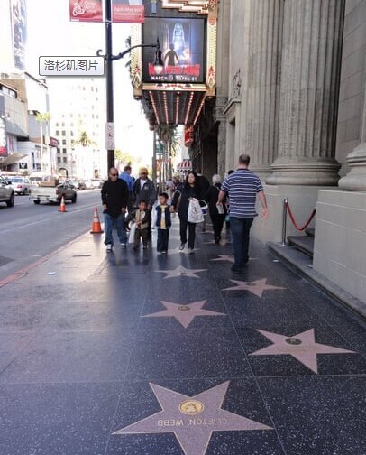 在洛杉矶市区西北方向,有一条叫好莱坞的大道(Hollywood Blvd),也称作星光大道(Walk of Fame)。在这个大道的两边人行道上,镶嵌着2000多块星形青铜图案,上面分4个部分,代表电影、电视、广播、录音等4个领域,记载着2000名以上曾经在这些领域有所成就的名人的姓名,全长达5公里。这里曾经是电影制作中心,虽然现在制片厂已经迁往了附近地区,但是这条大道繁华依旧,热闹依旧,每天从早到晚,仍然系车水马龙、游人似云。