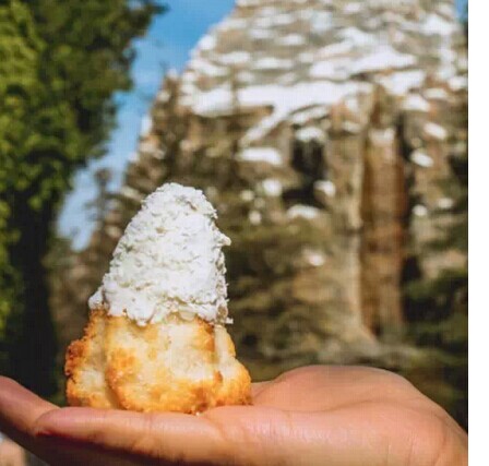 这座迷你山是顶上有一小团奶油的意式椰蓉马卡龙。很适合拍照之后发在Instagram上哟。