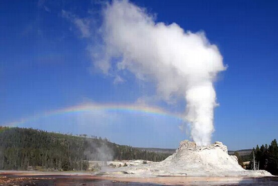 人们来到黄石公园,必到老忠实喷泉一睹为快。但见它不喷则已,一喷则如万马奔腾,更兼在阳光辉映下,水蒸气闪出七彩颜色,蔚为壮观,谁人能不发出赞叹之声。