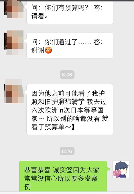 我感觉他可能是看到了我两本护照都满了,觉得我的信用度高吧,我去过六次欧洲,n次日本等国家,所有他别的什么都没有看,只看了我的预算单和护照就给通过了。这个过程都是很顺利的。