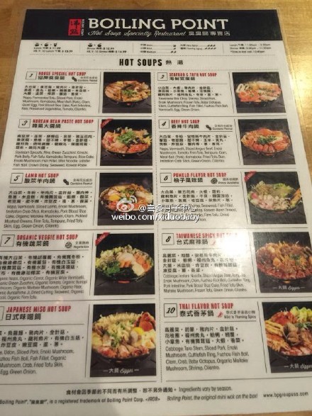 洛杉矶的美食真的很多,更方便的是在这边可以吃的不区域或国家的美食,在吃了很多当地的美食之后,有可能想吃一些中式美食,那下面就为您介绍的洛杉矶美食就是沸点火锅-Boiling Point。沸点的火锅是属于小锅,每人一个锅,有很多种类的火锅汤底可以选择。麻辣,清谈的应有尽有。出名的不仅是他们家的火锅,还有他们家的奶茶。热热的火锅配上好喝的奶茶。他们家的招牌臭臭锅和台式麻辣锅是比较出名的俩个锅。服务人员的态度很好,沸点的人均消费大概是20美元左右。