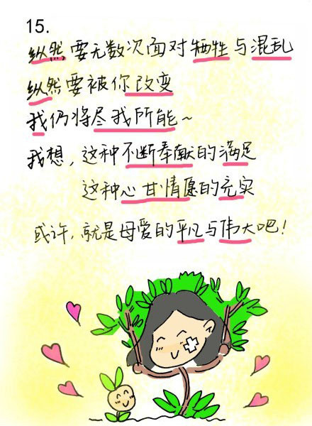 我从前一度认为我是一个不喜欢孩子的人,看见别人辛辛苦苦的带着孩子,我总会暗自窃喜自己有多么的自在轻松,直到有一天,我也当上了妈妈,拥有了一个用一生去牵挂的孩子。