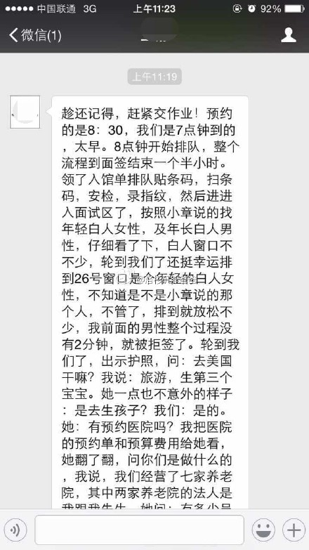 签证官一定会问签证申请人,去美国做什么。诚实签的人就会直说自己是去美国生孩子。面签官现在对去美国生孩子的家庭见怪不怪,对于这样的情况驾轻就熟地问起二人关于医院的预约情况,此行预算计划,仔细审查二人的家庭资产情况,确保没有问题,等等。就这件事上,公允而言,美国的签证官还是非常认真负责的,大家所要做的就是要在人家的要求下提供充足可信的材料,这是证明自己的依据。