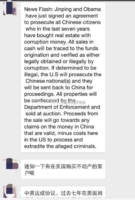 来自美国前方的最新信息:中美如今达成协议,过去七年在美国用现金购买不动产的中国人,必须向美方说明资金来源。