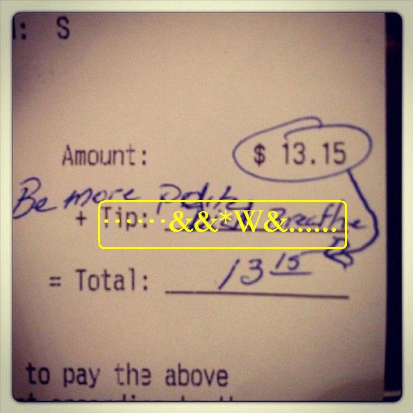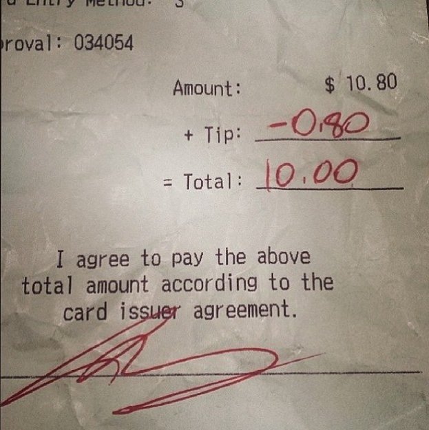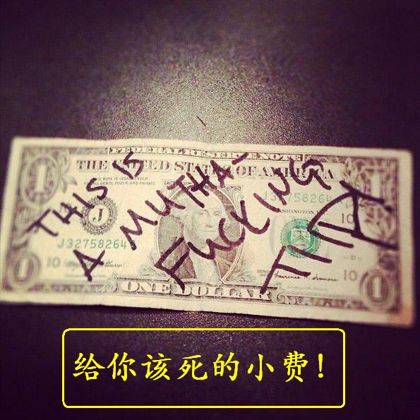 3. 给小费时,在纸币上写上侮辱性语言