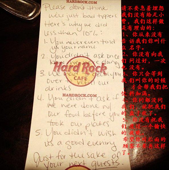 8. 真是“认真”啊!一条一条罗列不给小费的理由。