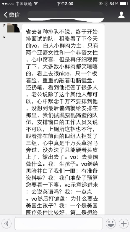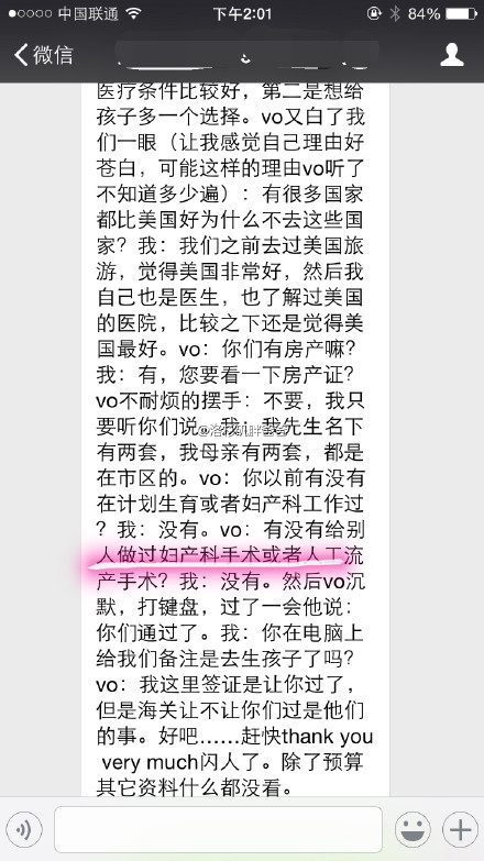 被面签官考察了赴美目的之后,就该是证明自费生产的经济能力。不过这位面签官对这位客户的工作经历颇有微词,中国医生并非都是妇产科医生,然而或许是中国计划生育让诸多人受苦,面签官也听到太多赴美生子诚实签的客人表达国内政策导致的生育不自由,故对这位医生发难,“你以前有没有在计划生育或者妇产科工作过?”“有没有给别人做过妇产科手术或者人工流产手术?”看来还是个蛮有正义感的面签官呢,但是针对错人了。最后这个家庭顺利拿到赴美签证,恭喜!预祝今后赴美生子的旅程一路顺利!