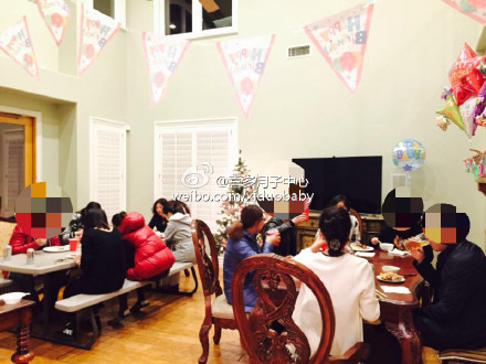 科洛纳Corona豪宅的赴美生子客人们相聚在一起,大家来自全国各地,福建、上海、江苏、湖南、北京。两个可爱的小美宝还穿上了爸爸妈妈看NBA圣诞大战时买的科比24号战袍呢!