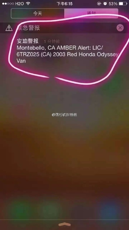【今天有安伯警报】手机刺耳怪叫,如果在外逛街,能听到人群中所有人的手机同时响起,刺耳且持续,就像灾难片里末日来临的提醒一样震撼。Amber alert用简短的文字清晰描述了犯罪者的基本信息,美国是车轮上的国家,这样做会让罪犯无处遁形。据悉美国失踪儿童97.7%可以被寻回,美国是孩子的天堂