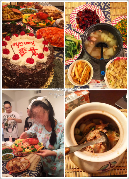 加州的阳光,如此温暖,空气是如此清新,居住环境静谧舒适……关键是,每天都欢乐多多,笑声连连!新鲜放心的食材,热菜热饭暖暖,新鲜水果牛奶果汁不断,每周充实的购物等出行,圣诞节派送礼物、赏灯活动聚餐、满月欢送宴,满足吃货口味的小肥羊火锅。就连管家老郑为老婆煲的私房老火靓汤和鲜榨奶昔果汁也总是拿来与我们分享。吃货们席地而坐,大口吃肉,大碗喝香槟。