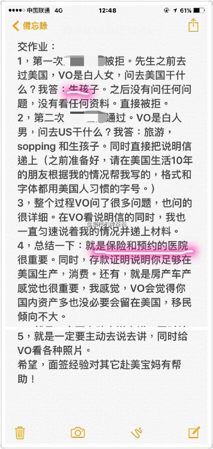 【恭喜北京孕妈独自一人诚实签证通过】第一次签证被拒后重新整理资料再次签证,今天通过了。北京人,预产期7月中旬,第二胎,已有一个大宝女儿,北京国企工作,只去过香港。先生是东北人,去过美国,原签证还在。两次签证都是诚实告知赴美生子,预定了喜多尔湾别墅套餐,恭喜!