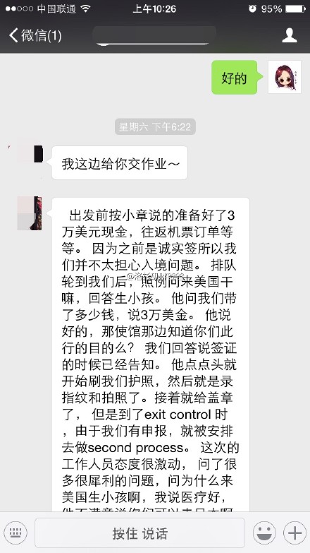 【恭喜北京客人顺利入境美国】北京人,26岁,第一胎,预产期5月初,夫妻双方都从事于金融行业,数年美国留学经历,出入境记录良好。夫妻两人携3万美金入境洛杉矶,诚实告知赴美生子真实目的。虽遇见发牢骚的边检官员,可仍然顺利入境,入住喜多月子中心尔湾分馆,欢迎!
