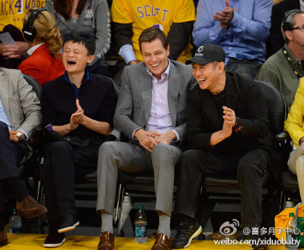刚刚与苹果CEO库克会面的马云又出现在NBA赛场边,观看洛杉矶湖人队主场对阵休斯顿火箭队。今天是NBA新赛季的首个比赛日,湖人与火箭之争作为焦点战吸引了不少眼球。比赛期间,火箭队中锋霍华德与湖人当家球星科比发生冲突,这对冤家对头也用实际行动向马云证明,你没白来。不光是马云,还有赵薇,李连杰等国内名人坐在台上的观众席上观看了这场精彩的赛事,赵薇还和老公带着孩子一起来到了洛杉矶,看来这场赛事的确吸引了不少人的兴趣,使得大家不远万里的来到现场观看球赛,赴美生子的妈妈们也可以把钟爱NBA的爸爸带来一起看球赛啊,想必这一定是一次非常难得的机会,会为你们的赴美生子之行增添几分乐趣。
