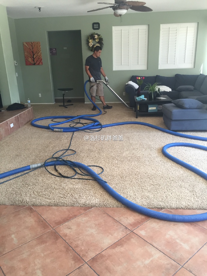 喜多的地毯除了定期大清洁以外,还有每天每周和每月的固定针对性清洁和晾晒,这一点也比较依赖于加州充足的日光,适量的紫外线有助于杀死地毯中隐藏的螨虫细菌等赃物,所以日常的小清洁还是比较方便的。