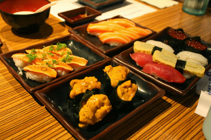 当然,对于亚洲胃口来说,还有另一种自助:All YouCan Eat日式料理。比如Sushi House Goyemon和Sushi Mon。这两家是一个老板,风评还算不错,Goyemon要稍胜一筹。Goyemon中文是“五右卫门鮨屋”,从早上11点45分开到凌晨3点!宵夜的好选择,有木有?!午餐21.95美金,晚餐26.95美金。
