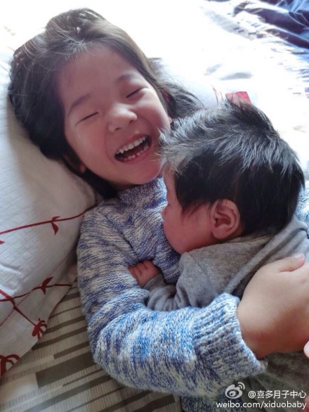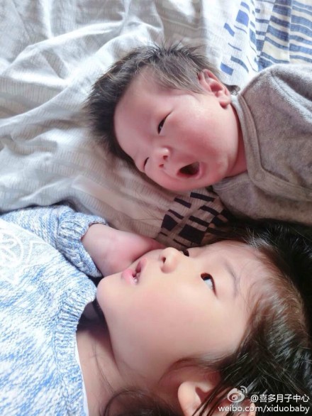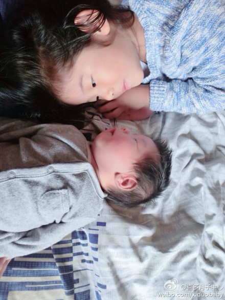 照片里是妈妈的两个宝宝,刚在美国出生二宝和姐姐躺在床上,温馨的对视,看的出姐姐非常喜欢妈妈在美国生下的这个小妹妹,今后就有小伙伴了,真让人开心啊