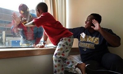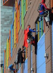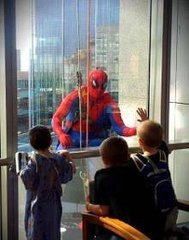 (2012年,国外的一家保洁公司在为当地儿童医院擦窗户时,安排工作人员装扮成蜘蛛侠、超人等英雄形象。每一个楼层的孩子们都激动都不已。太有爱!,需要的是整个社会的良好的信仰环境)