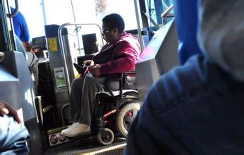 美国的公车最人性化的地方是对老人和残疾人。美国的公车都有一个升降装置,在国内旅行的大巴上才偶尔可以看到。在行动不便的老人或乘轮椅的残疾人需要上公车的时候,司机就会把升降板降到和地面水平,等老人或载有残疾人的轮椅上到升降板上后,司机再把板子升起来,这样老人和残疾人不用费力就可以上公车了。
