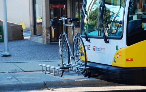 ①:美国的公共汽车前面都有一个自行车架,可以放两辆自行车。经常看到有人推着自行车等车,汽车来了,就径自将自行车放到架子上,然后上车。