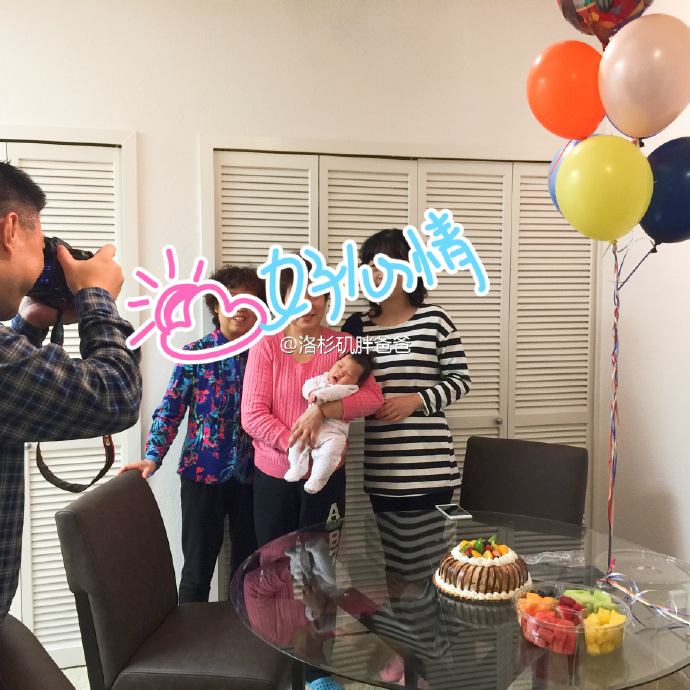 小美宝满月的时候美国喜多月子中心组织同一栋赴美生子的妈妈们一同庆祝,宝爸也已经来美国接家人回国。