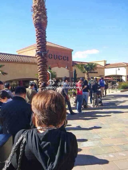 "疯狂星期五提前预演 ,GUCCI今天五折再折,来晚一步队伍老长了,进去后全被国人扫荡一空"