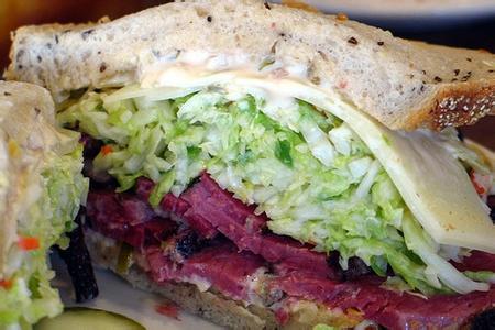 洛杉矶地区最好的一间熟食店 --Langer's Deli。虽然位于市中心一个鱼龙混杂的地区,但是他们的三明治是出了名的好吃。洛杉矶湖人的飞机餐都是由他们供应的。第一次去吃的朋友记住要点19 号的三明治,是午餐的好选择。