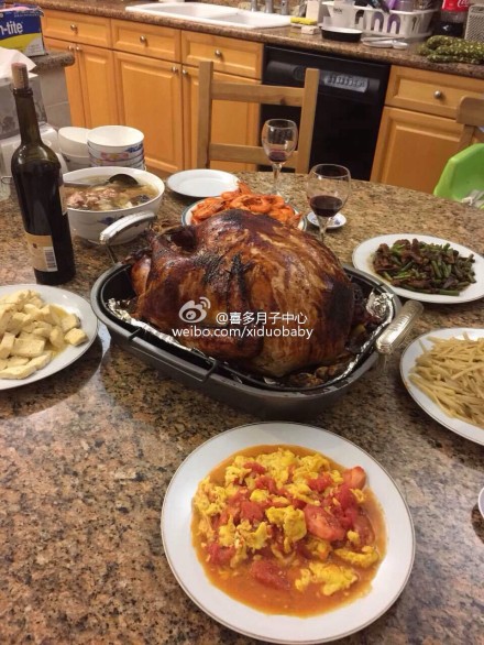 火鸡,大鱼大肉是不可少的,蔬菜水果也是丰富齐全的哦,营养均衡才是重要的嘛哈哈