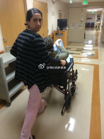 9、如果没有家人送医,美国有提供援助的机构接送,左图中的老人就是,她正被工作人员推往各处检查。