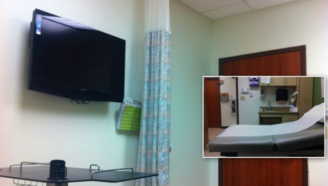 11、检查都是在单间里进行,等待期间可以看电视,这个屏幕也可以用来解说病况。