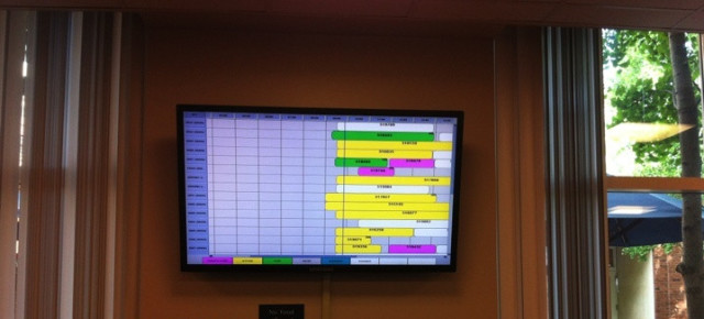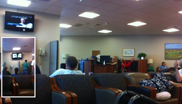 17、每个手术病人会给分配一个专门号码(保护病人隐私不用姓名),墙上的屏幕显示每个号码的手术预期时间和实际进展时间,等待区很舒适也很安静,可用免费Wi-Fi上网打发时间。
