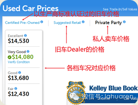 在价格方面,Blue Book提供了很好的参考. 只要输入车子年份,牌子,model, mile数,和买车的邮编,kbb就会给你建议不同条件的车子的不同价格。
