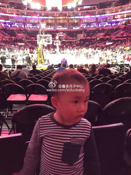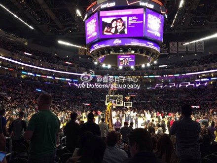 “今天去现场观看湖人队的球赛,感觉真好,老公是科比的粉丝,非要现场助阵,我只好奉陪。”