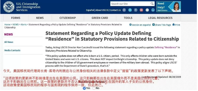 而且截图中的文字阐述,也不符合美式表达, 美国公民应该是U.S. Citizen,而非American citizen,美国之外出生的婴儿应该说babies born outside the U.S. 或者是 born abroad,而不是 out of the USA。