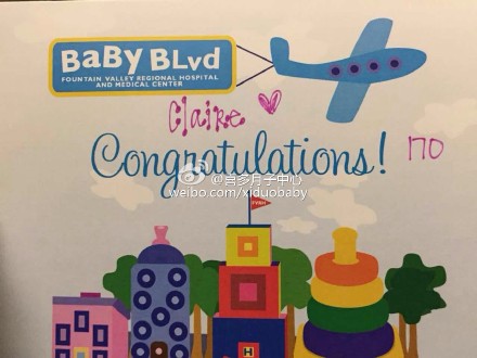 “我家小妞Claire于美国时间12月16日下午12:55分出生,重七斤九两,母女平安,谢谢各位亲朋好友的鼓励!人生起航! ”